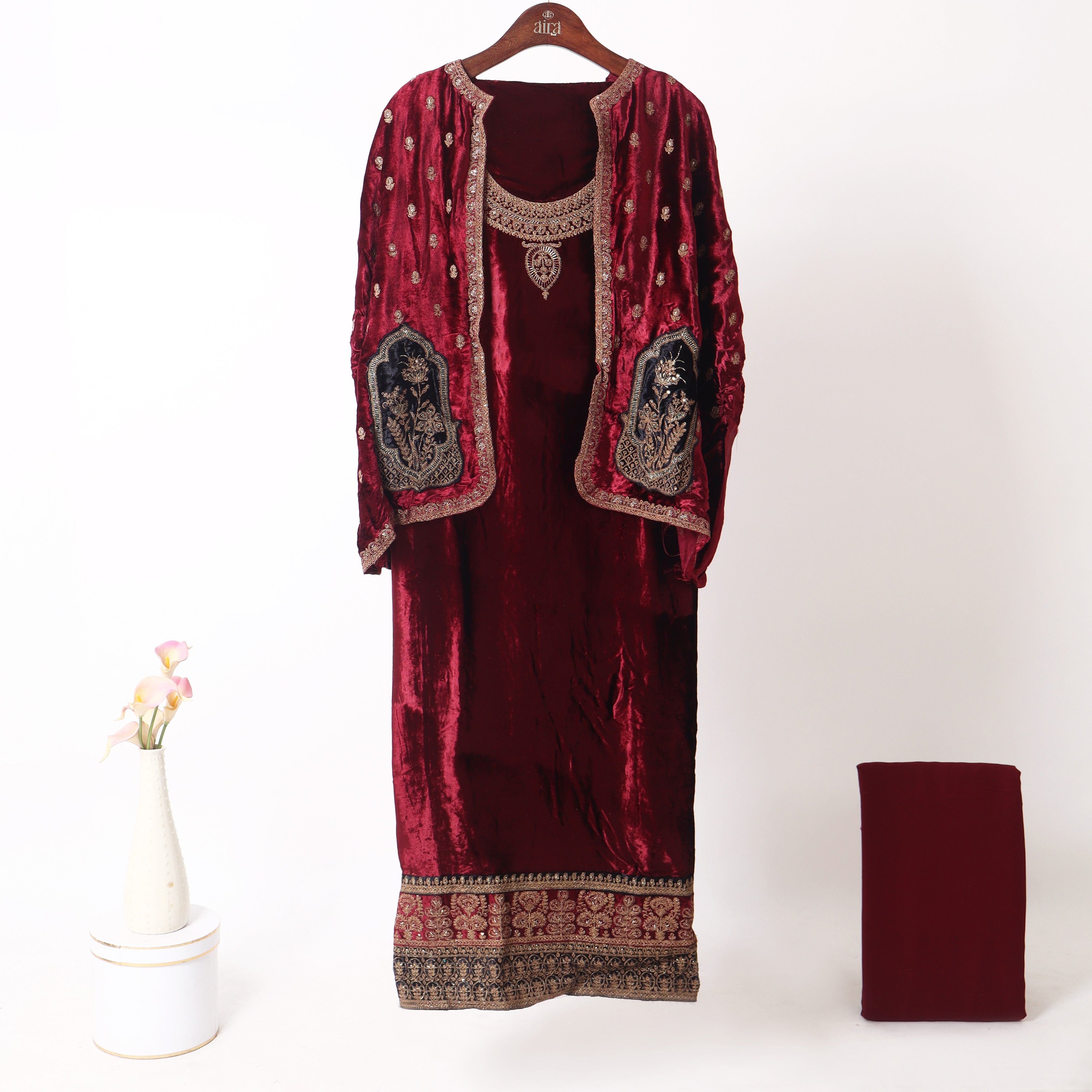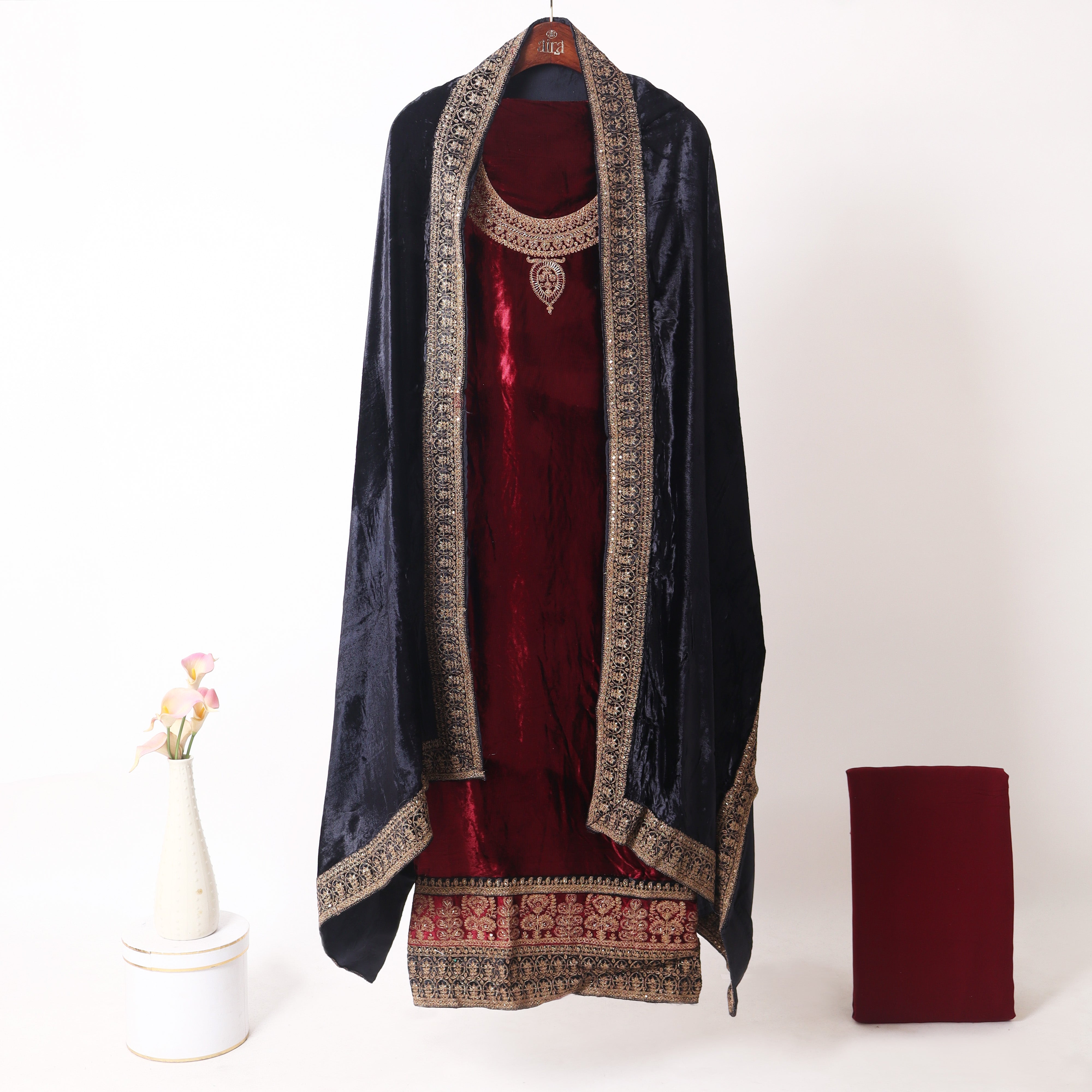 Refresh availabilityStep into the season of celebrations with our luxurious Unstitched Velvet Suit. Crafted from rich, premium-quality velvet, this fabric radiates a royal charm with its soft sheen and plush texture. Perfect for winter festivities and special occasions, it ensures comfort while adding a regal touch to your style. Design it your way — from minimal elegance to heavily embroidered grandeur.