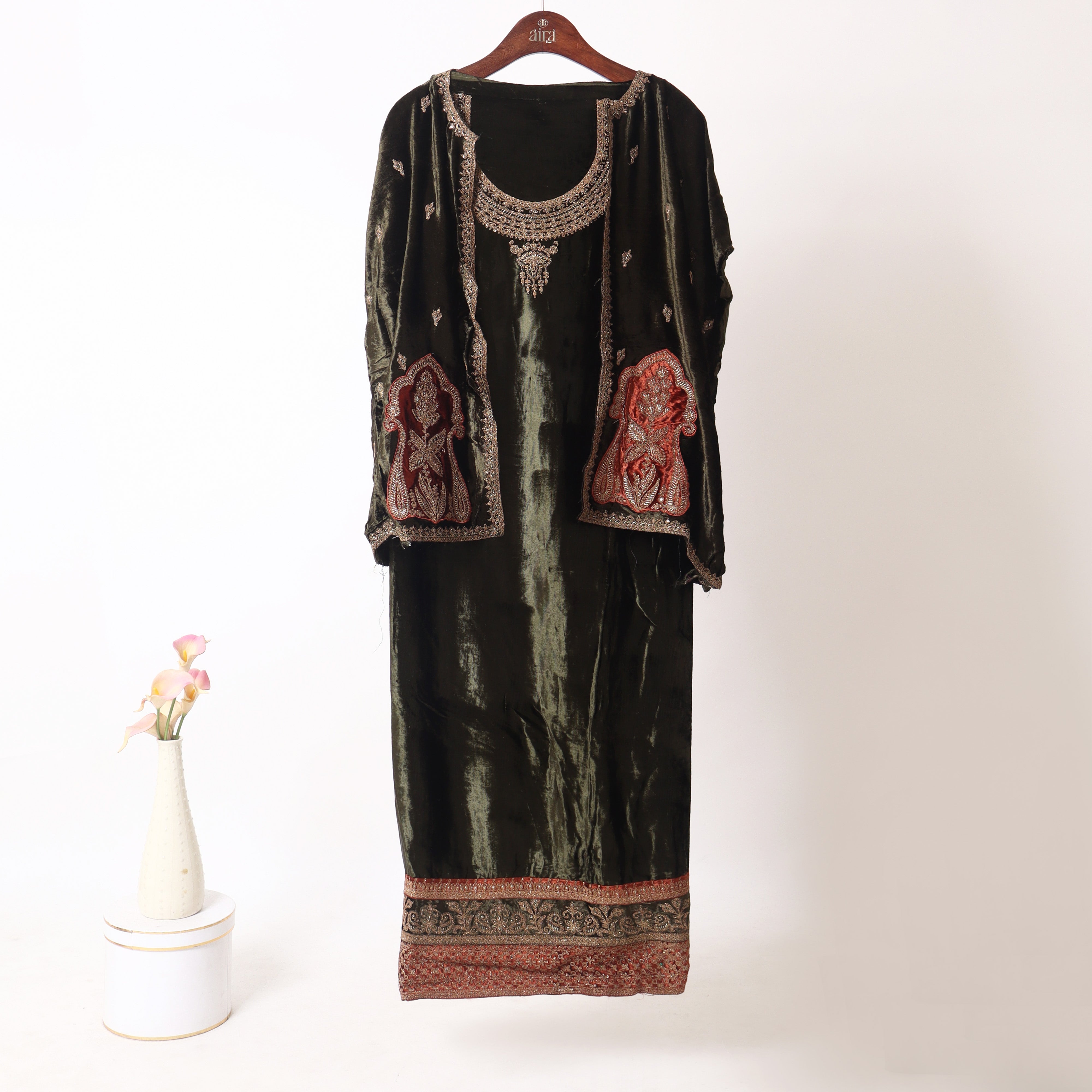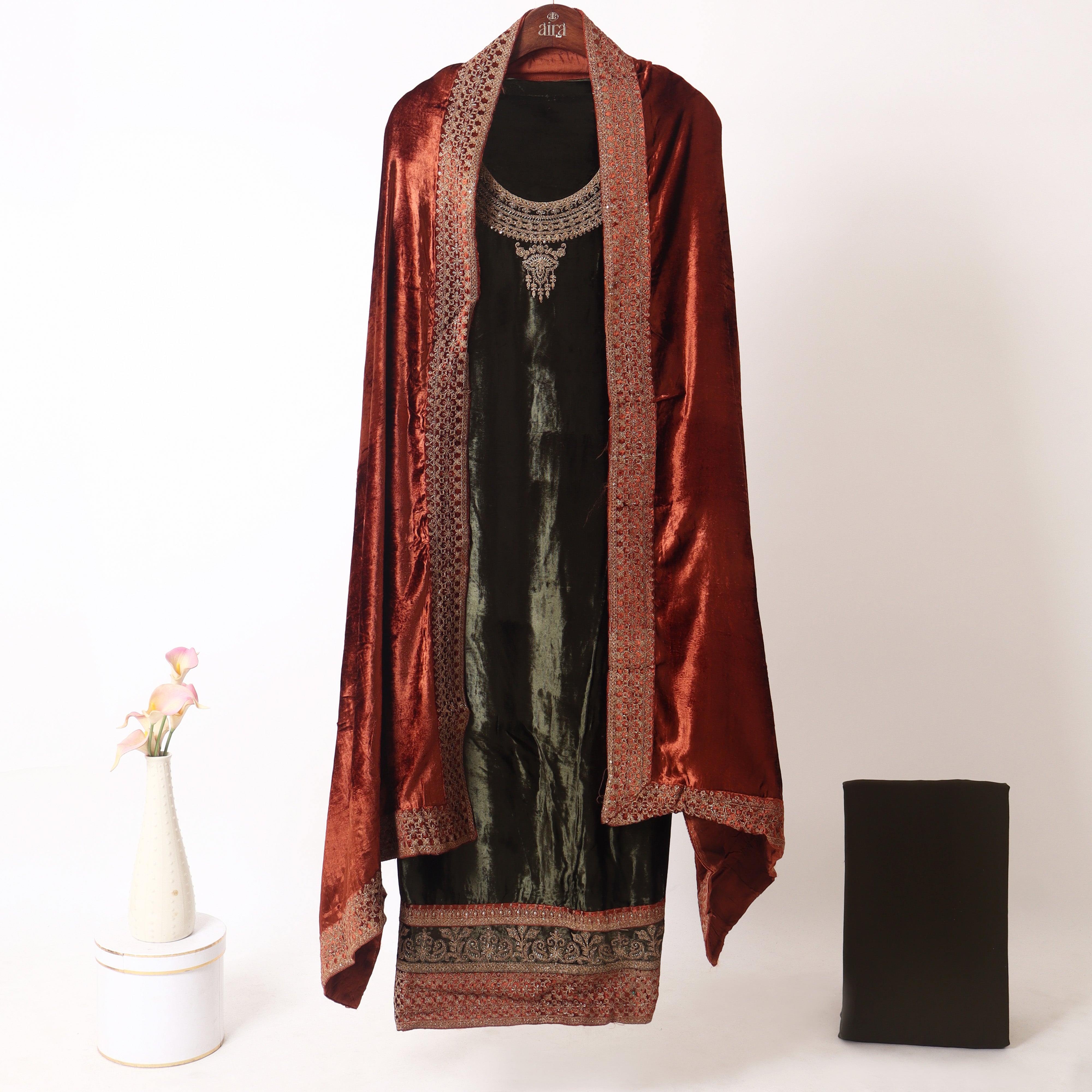 Refresh availabilityEmbrace the charm of luxury with our Unstitched Velvet Suit. Crafted from rich, soft velvet fabric, this ensemble offers a royal look with a smooth, lustrous finish. Ideal for festive gatherings and winter soirées, the fabric drapes beautifully while keeping you warm and elegant. Style it with detailed embroidery or embellishments to create your personalized designer outfit.