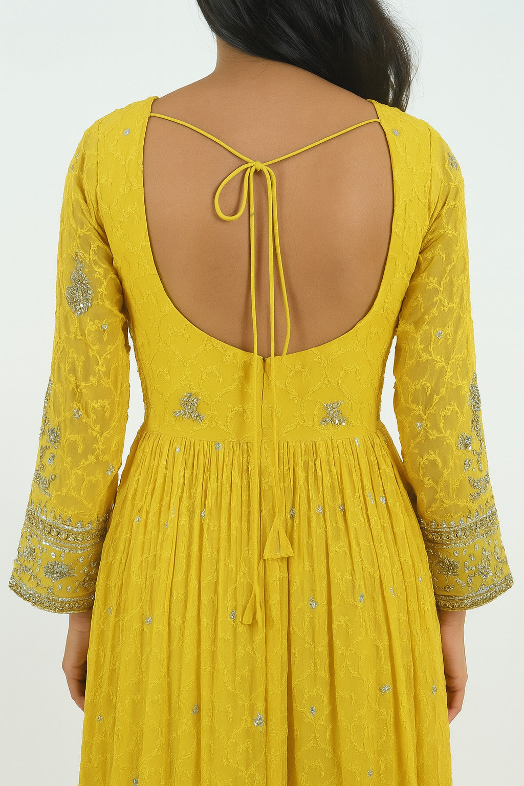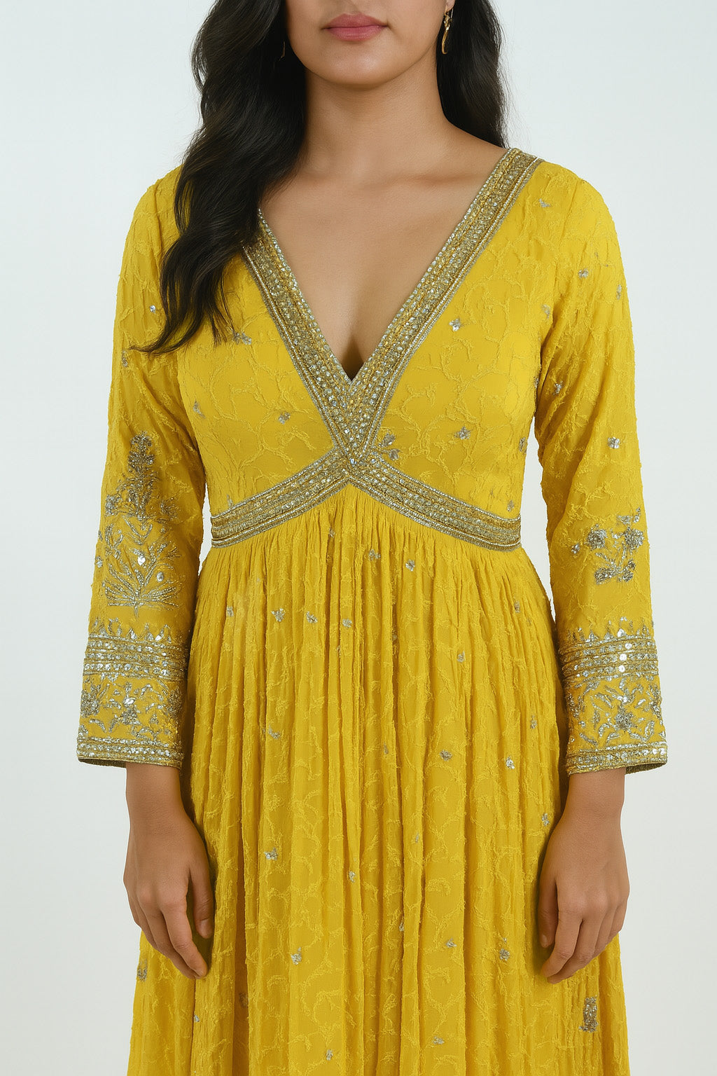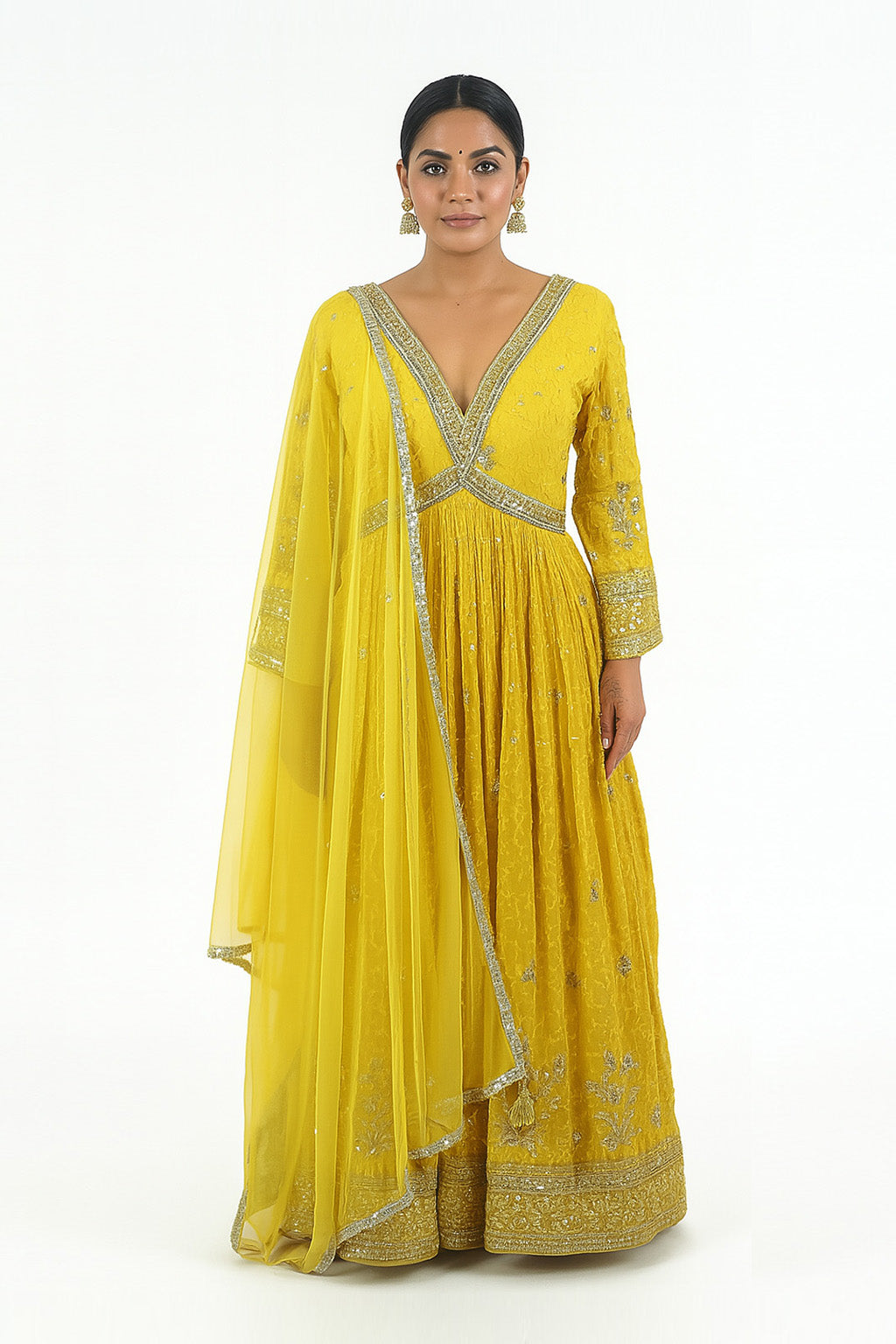 Refresh availabilityElevate your ethnic wardrobe with this Yellow Embroidered Anarkali, expertly crafted to blend traditional elegance with contemporary style. The intricate embroidery enhances the vibrant yellow fabric, creating a striking visual appeal. Designed for comfort and grace, this Anarkali offers a flattering silhouette suitable for festive occasions and formal events. Its detailed craftsmanship ensures a refined look, making it a timeless addition to your collection.